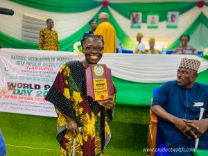 In her acceptance remarks, Mrs Joy Iyabo Bolarin expressed heartfelt gratitude: “I feel so good because being honoured by my people; this is the first time I’m receiving an award from my own disability community and I’m so happy for this.